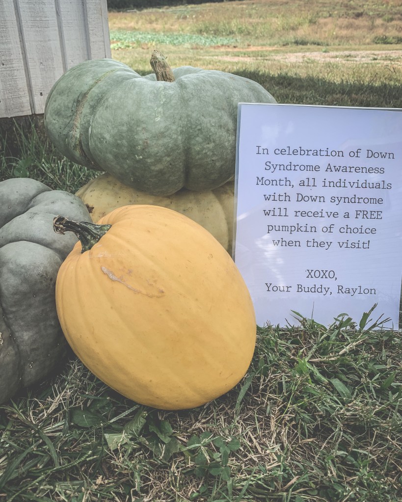 Promoting Down syndrome awareness and inclusion is something near and dear to our hearts since our son, Raylon, was born with Down syndrome. We proudly support the Down Syndrome Awareness Group of East Tennessee and their mission to bring families and professionals together through support and information about Down syndrome. Additionally, each fall, we give all individuals with Down syndrome who visit our pumpkin patch a free pumpkin of choice. Raylon loves meeting new buddies, so stop by and say hi!